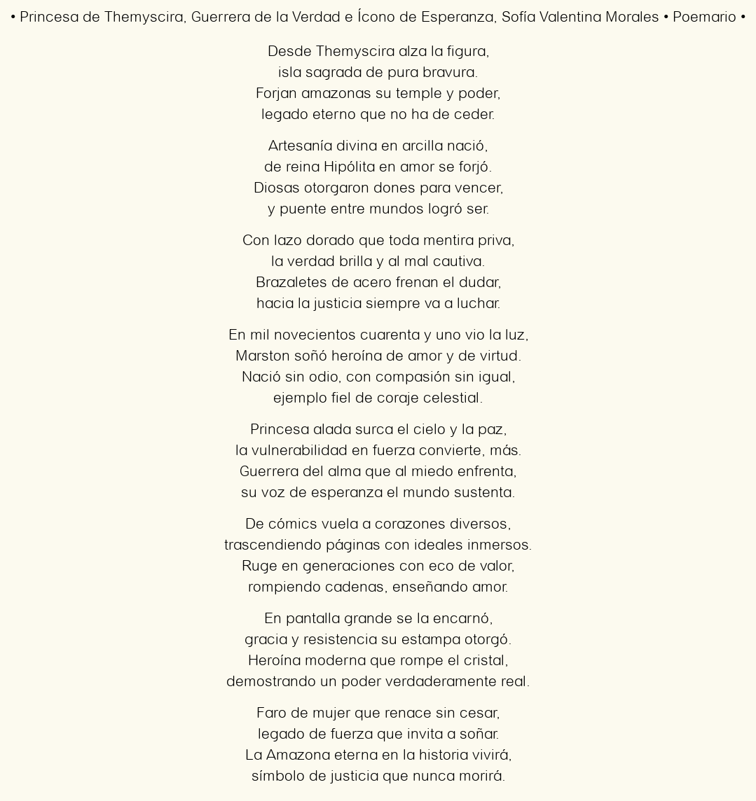 Princesa de Themyscira, Guerrera de la Verdad y Esperanza, Sofía Valentina Morales